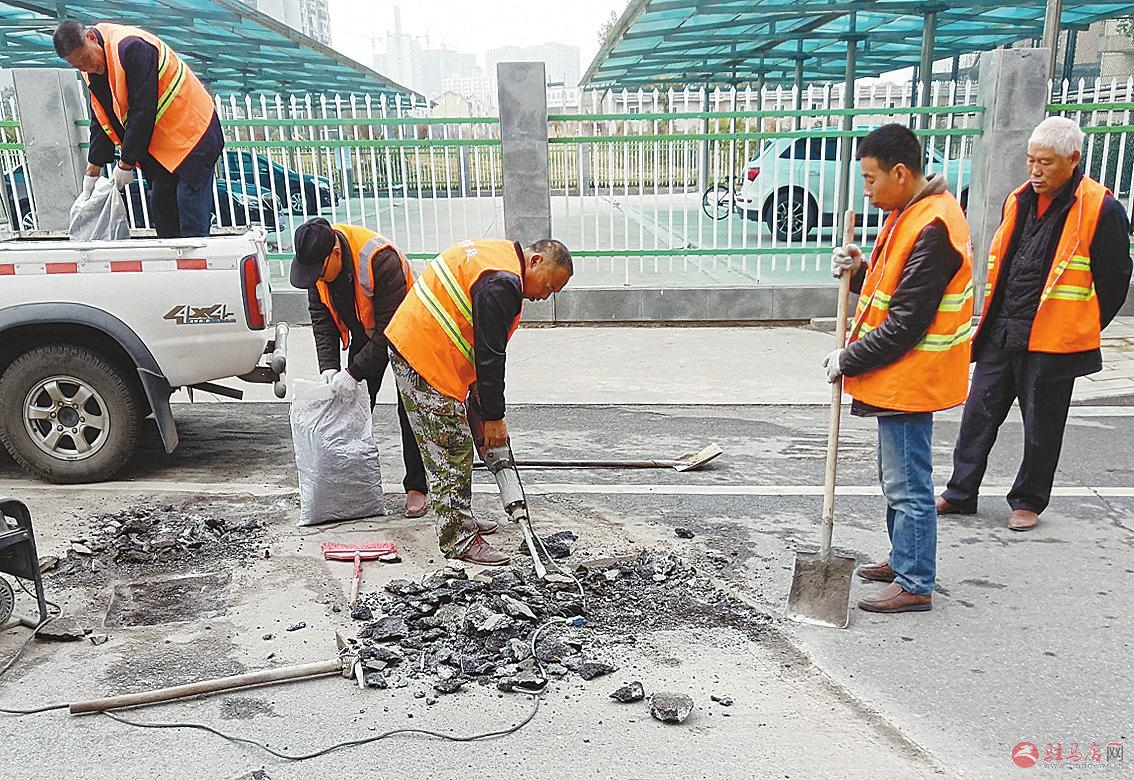 开发区城市管理局对市区破损路面进行抢修。记者 唐翀 通讯员 黄倩 摄影报道