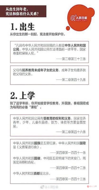 12月4日是第六个国家宪法日,从出生到年老、从婚姻到职场,宪法和你我有什么关系?了解宪法咱们先从“我”与宪法的故事开始吧。《中华人民共和国宪法》是中华人民共和国全国人民代表大会制定和颁布的国家根本大法,规定国家的根本制度和根本任务、公民的基本权利和义务、国家机构的组织原则和职权。宪法具有最高的法律效力,一切法律、法规都必须依据宪法,都不得同宪法相抵触。