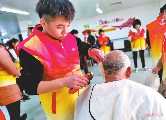 天中义工走进市福利院,为行动不便的老人免费理发。记者 邓桦 摄