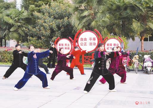 市民积极参加晨练,享受健康快乐生活。记者 张朝 摄