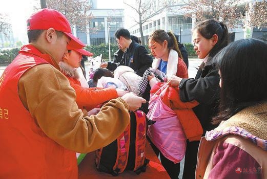 本报讯(通讯员 张涴清)12月3日,上蔡县洙湖镇桃花店小学的学生穿着新羽绒服,脸上洋溢着幸福的笑容。