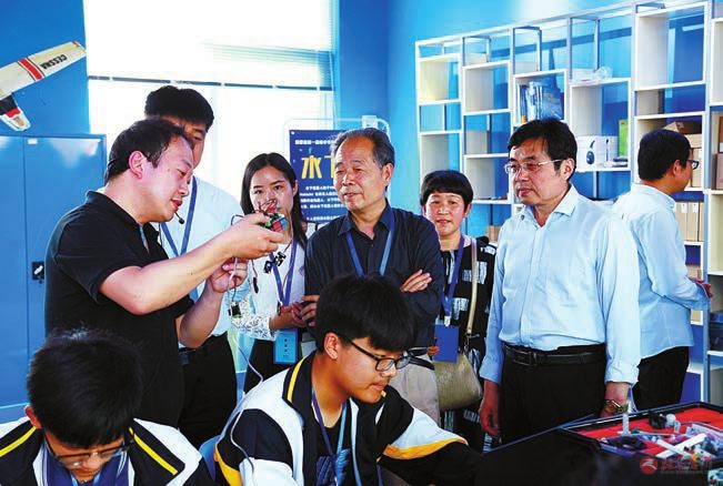 省教育厅、关工委领导视察新蔡一高学生科技创新活动。(资料图片)
