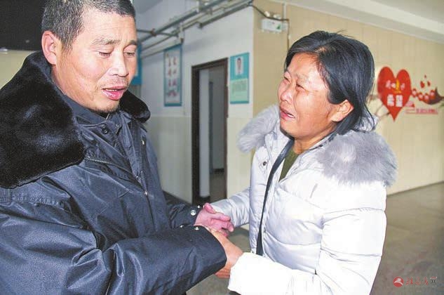 姐姐拉着22年没见过面的弟弟高兴地流下眼泪。