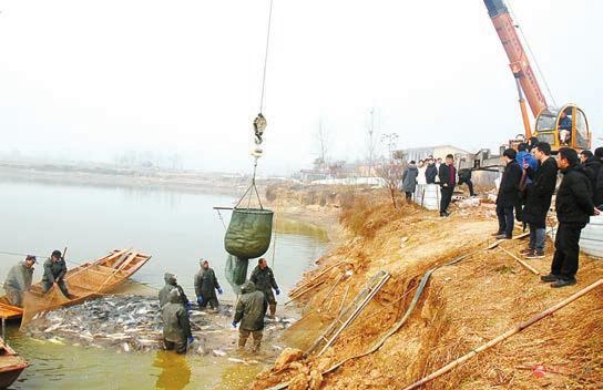 “金融大咖”目睹水塘捕鱼的现场。