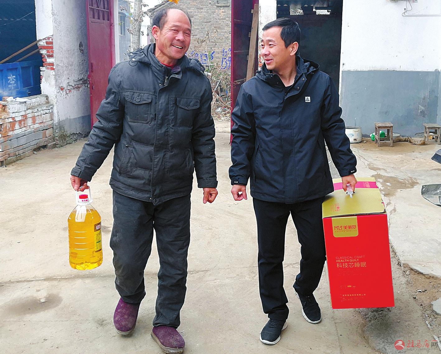图为帮扶责任人把企业捐赠的爱心物品送到每个贫困户家中。 通讯员 刘俊凯 摄