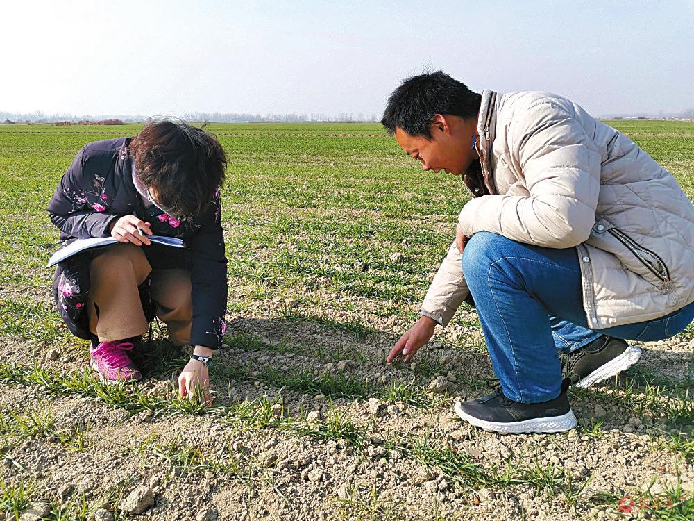 12月12日,正阳县气象局农业气象技术人员深入田间地头,开展冬小麦越冬前期大田调查。