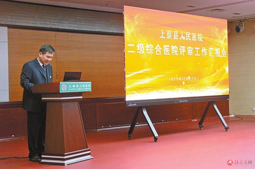 上蔡县人民医院院长李留群向“二甲”评审组作汇报。