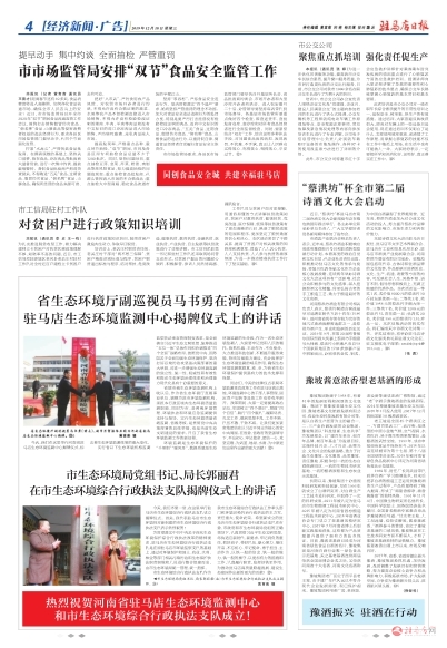 省生态环境厅副巡视员马书勇在河南省驻马店生态环境监测中心揭牌仪式上的讲话