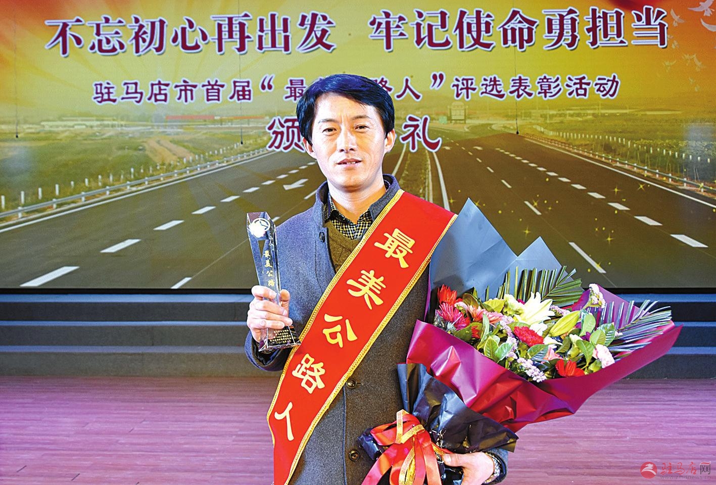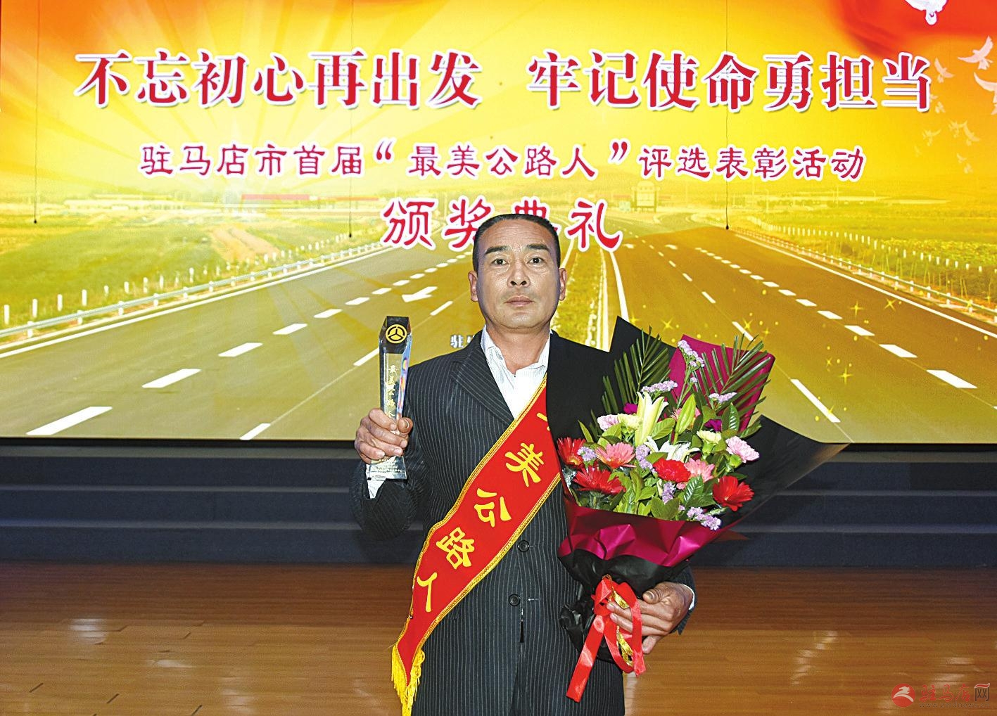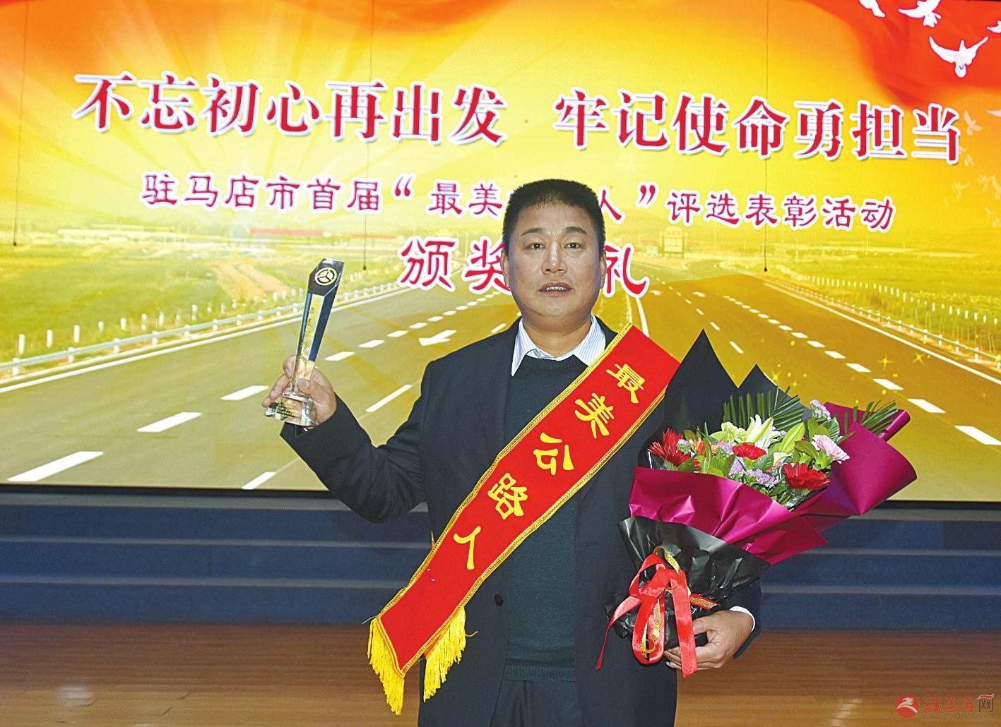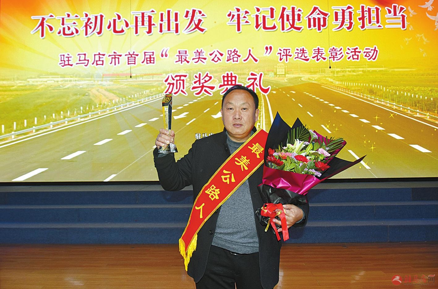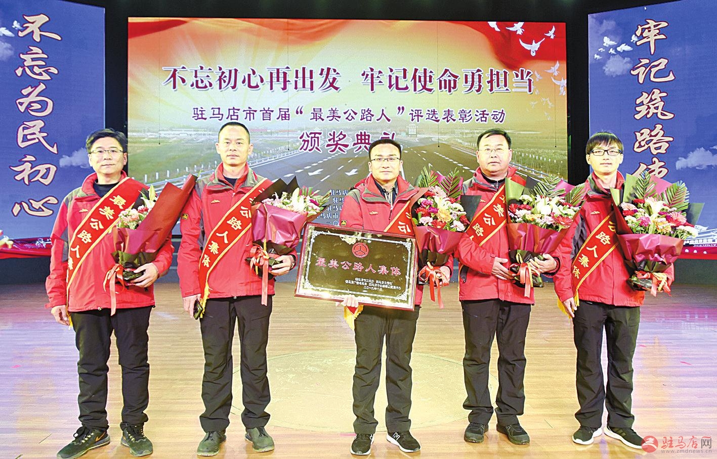 出席颁奖典礼的有关领导与首届“最美公路人”亲切合影。