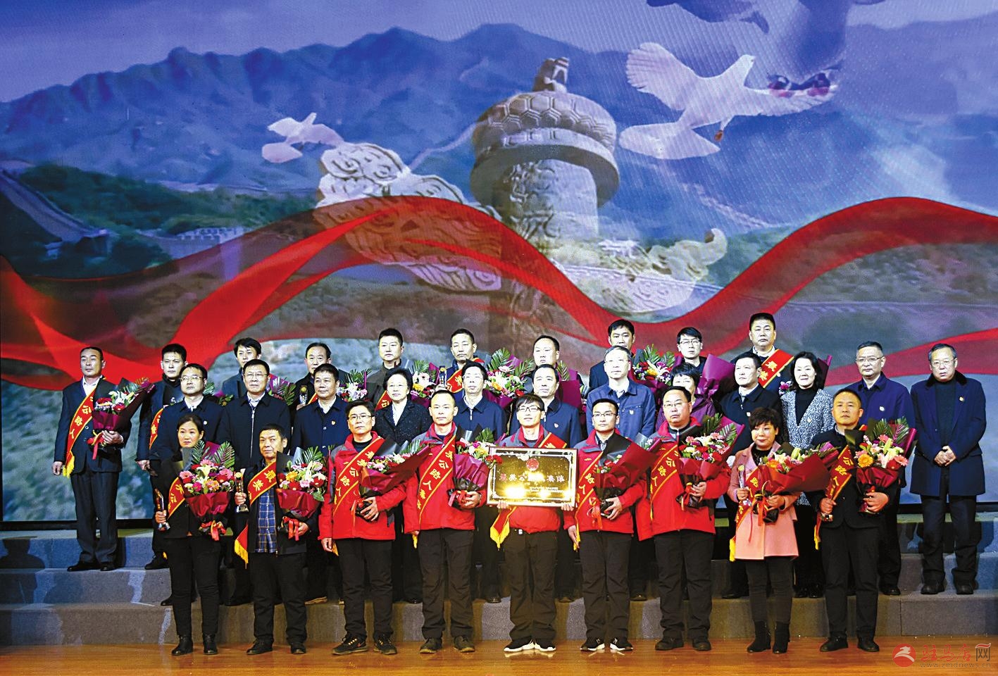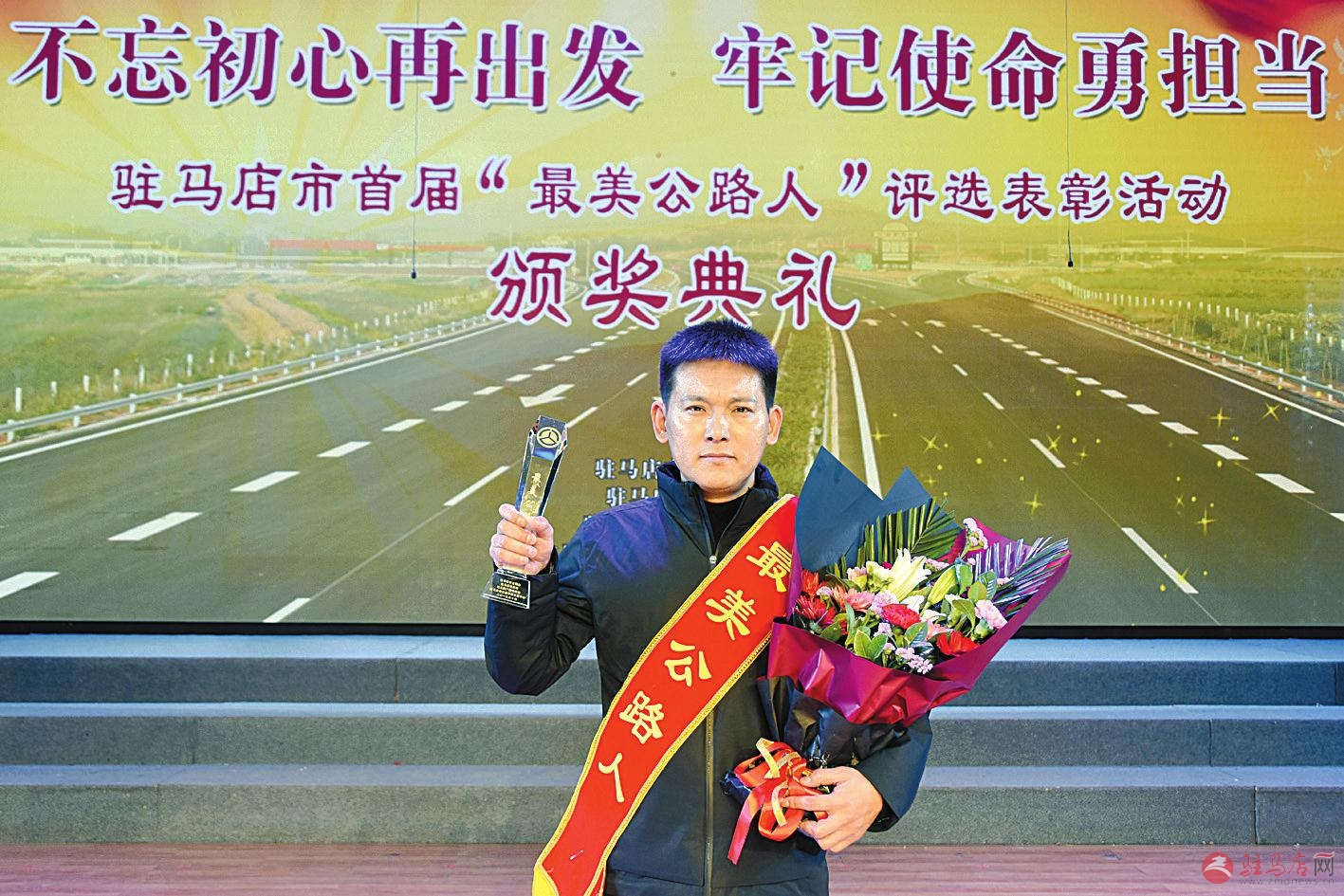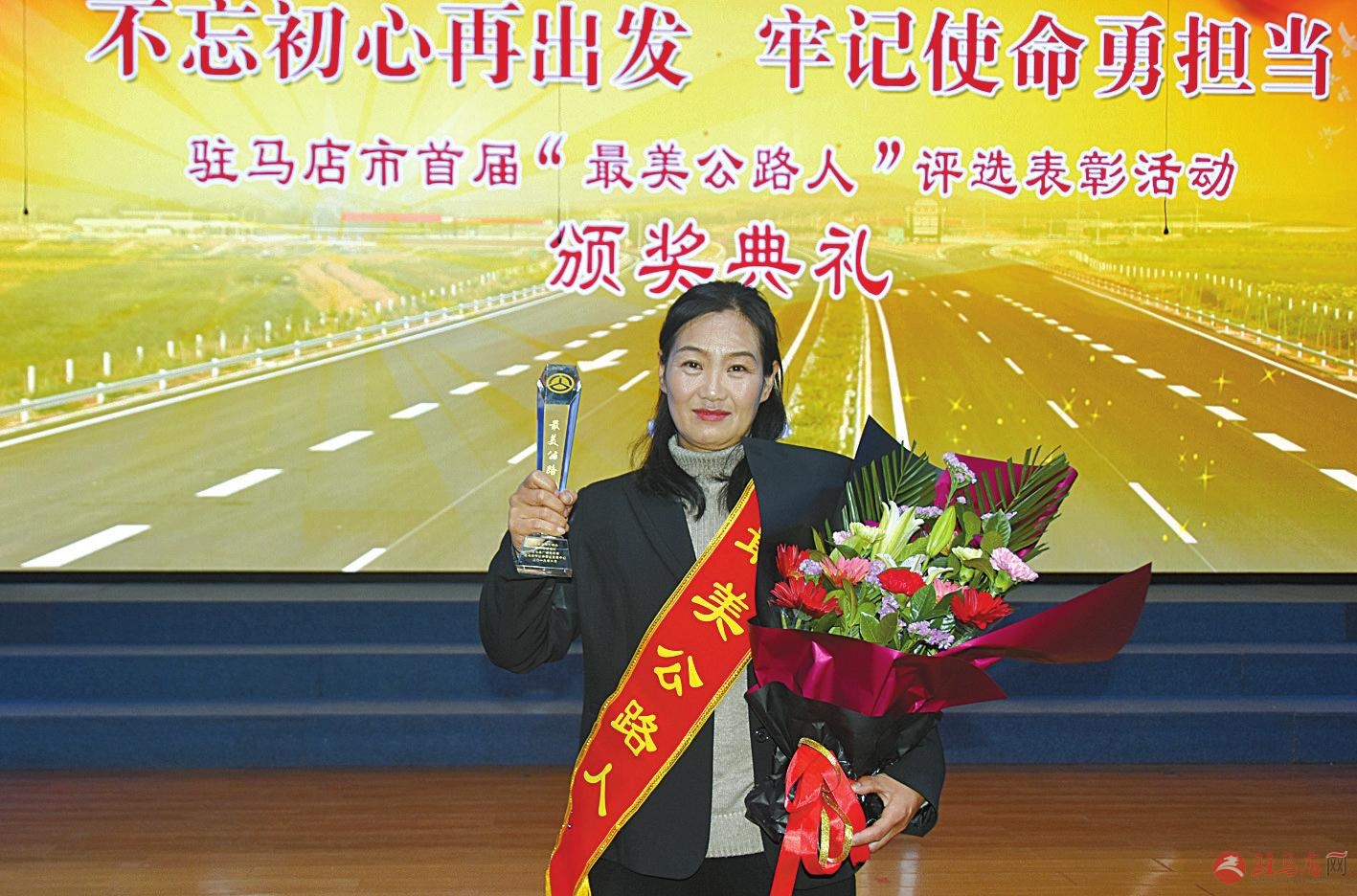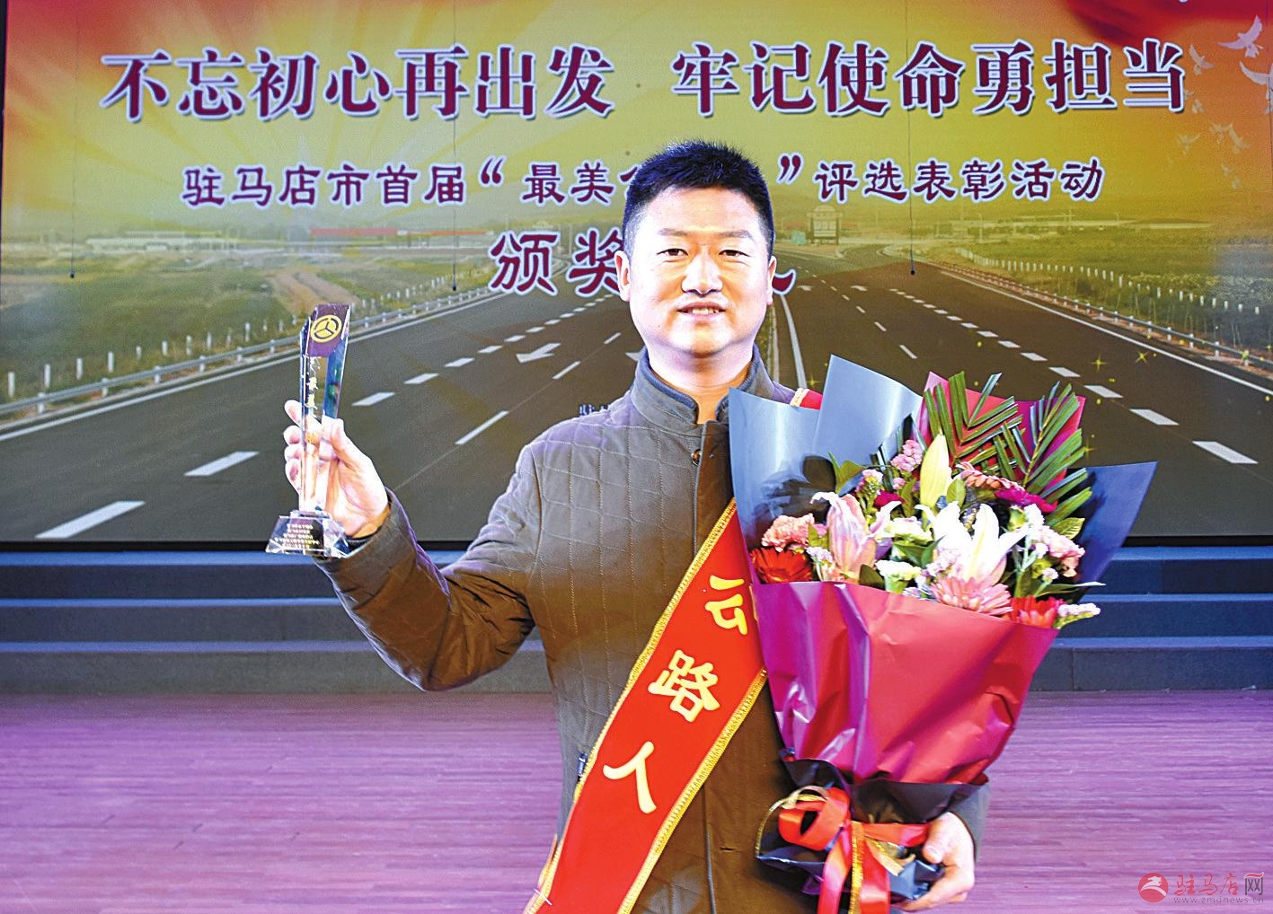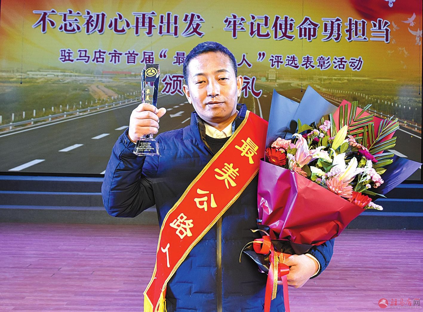 出席颁奖典礼的有关领导与首届“最美公路人”亲切合影。
