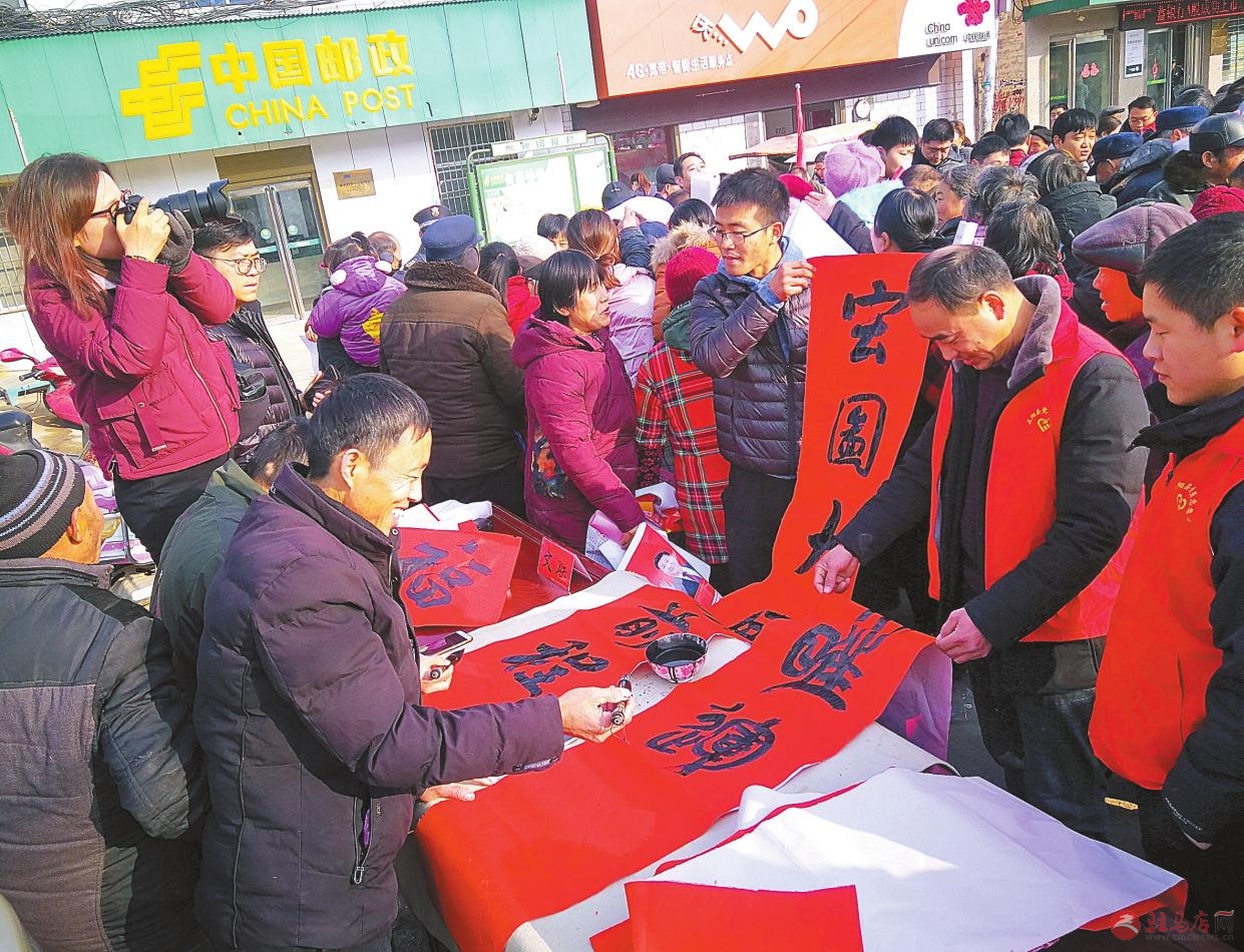 正阳县图书馆工作人员在油坊店乡开展“扶贫送温暖、送春联”活动。 通讯员曾亚伟摄