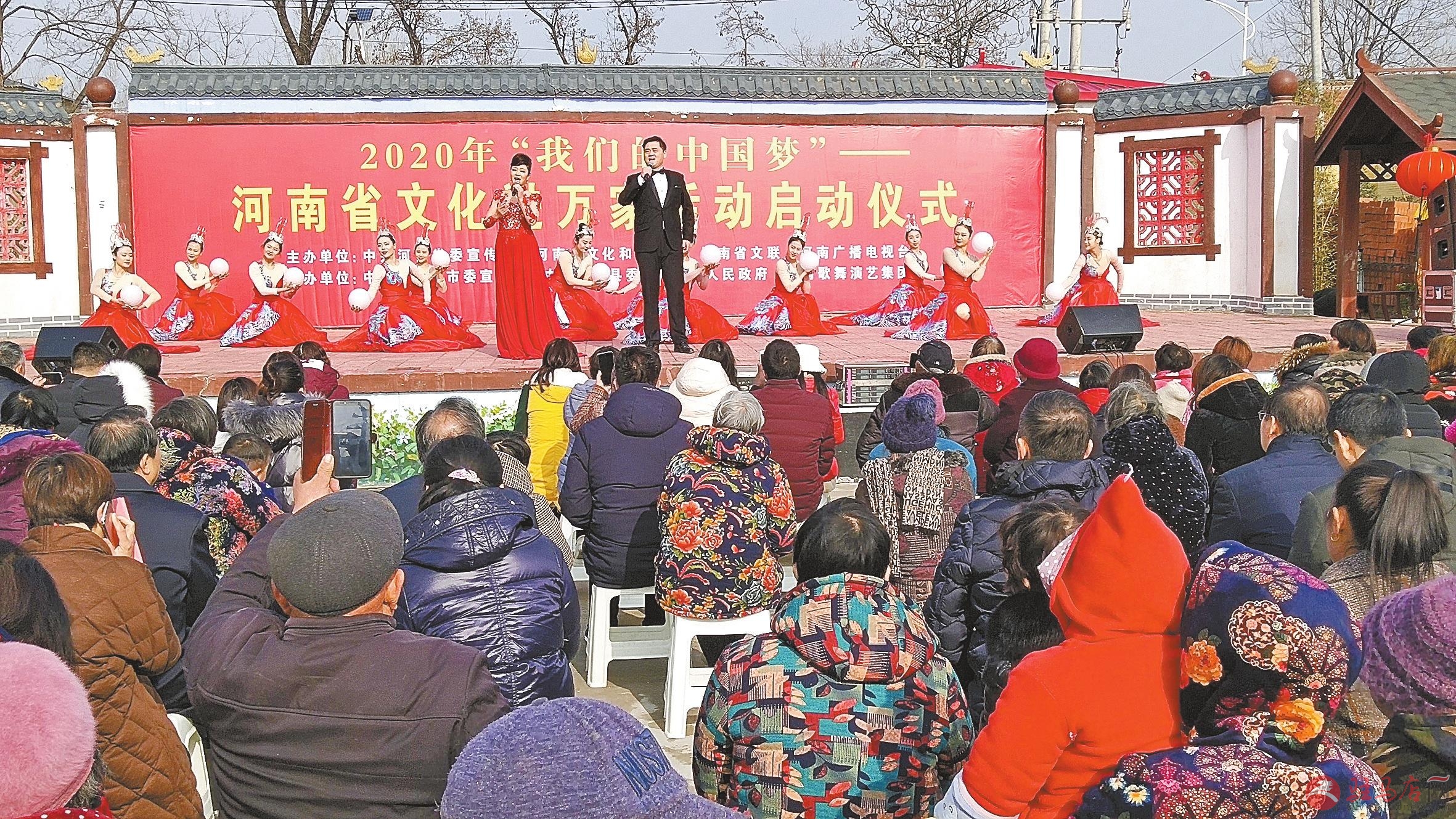 日前,由省委宣传部、省文化和旅游厅、省文联、河南广播电视台联合主办,市委宣传部、上蔡县委、上蔡县政府、河南歌舞演艺集团承办的“我们的中国梦”——河南省文化进万家活动启动仪式在上蔡县邵店镇高李村文化广场举行。