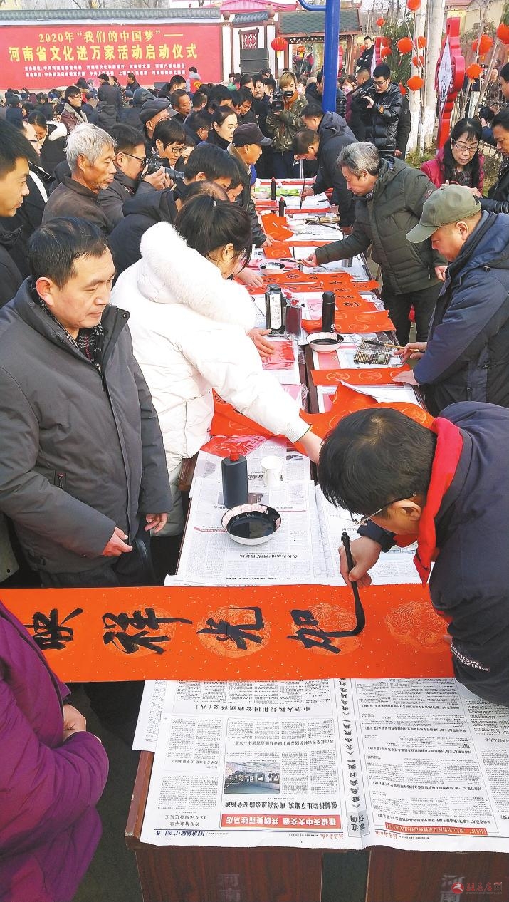 仪式上,来自省、市的中国书法家协会会员和声乐、戏剧、舞蹈类艺术家为高李村群众奉献了一场精彩纷呈的文化盛宴。同时,书法家将一副副散发着浓浓墨香的春联和“福”字送给群众,受到了他们的热烈欢迎。
