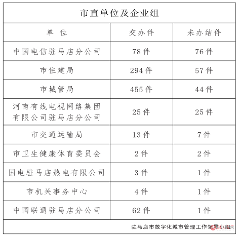 驻马店市数字化城市管理案件办理后进单位周通报