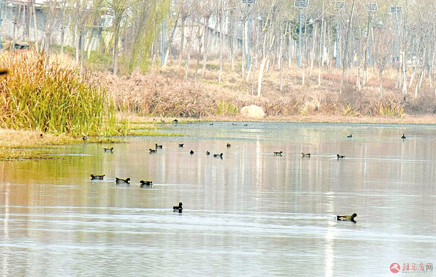 岸边芦苇随风摇摆,水中鸟儿结队嬉戏,这是笔者近日在正阳县城西区清水湾湿地公园见到的冬日风景。