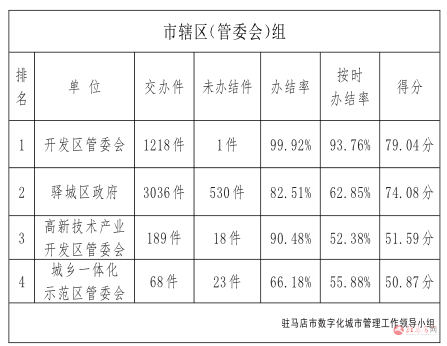 驻马店市中心城区2019年12月份数字化城市管理工作考评排名情况通报