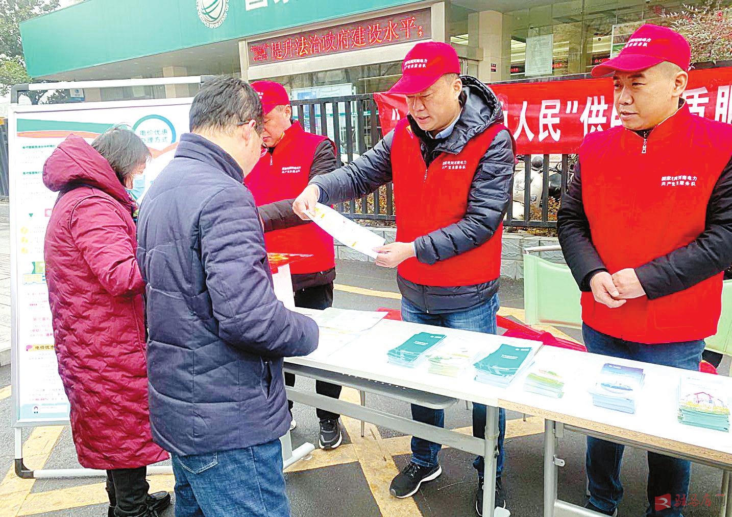 日前,驻马店供电公司组织所辖市、县公司集中开展“人民电业为人民”供电优质服务宣传日活动。该公司营销专业党员服务队队员走上街头,向群众发放宣传资料,宣讲电费电价、线上缴费、煤改电等惠民政策,同时深入社区、小微企业走访,帮助留守家庭、五保户等特殊群体检查家庭用电设施,帮助企业解决用电难题,用真情服务确保客户温暖过冬。