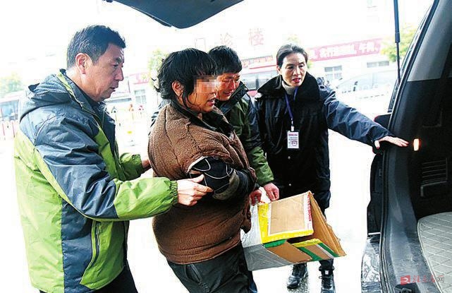 智障女子上救助巡逻车,接受政府救助。