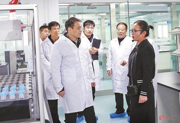 调研组在市质量技术监督检验测试中心考察。