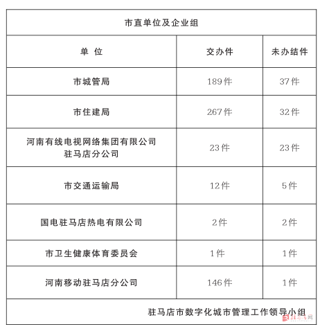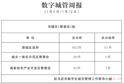 驻马店市数字化城市管理案件办理后进单位周通报
