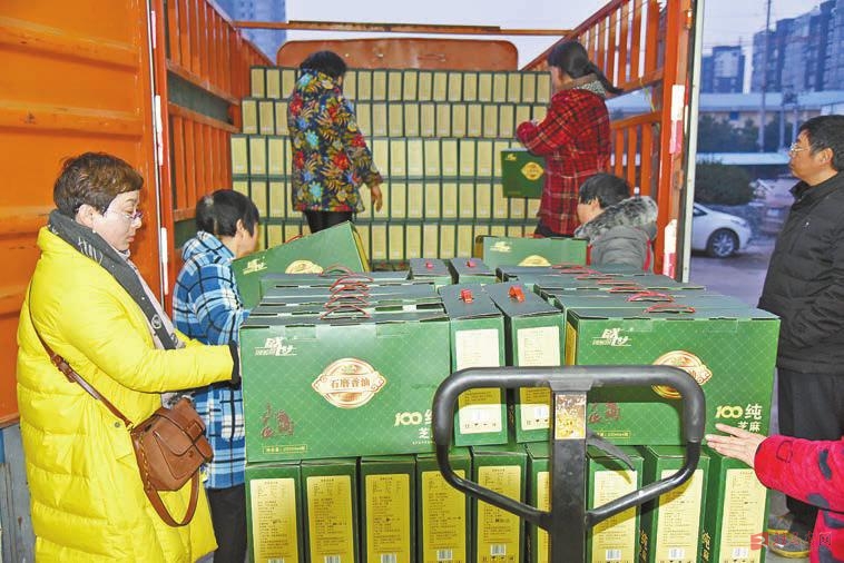 1月14日,一辆满载着一箱箱纯石磨香油的货车从上蔡县盛世粮油有限公司发往郑州市。