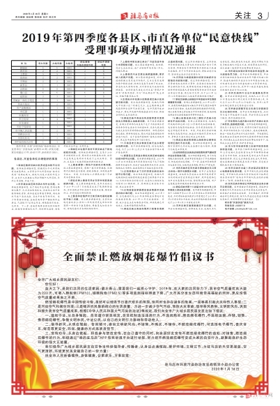 2019年第四季度各县区、市直各单位“民意快线”受理事项办理情况通报