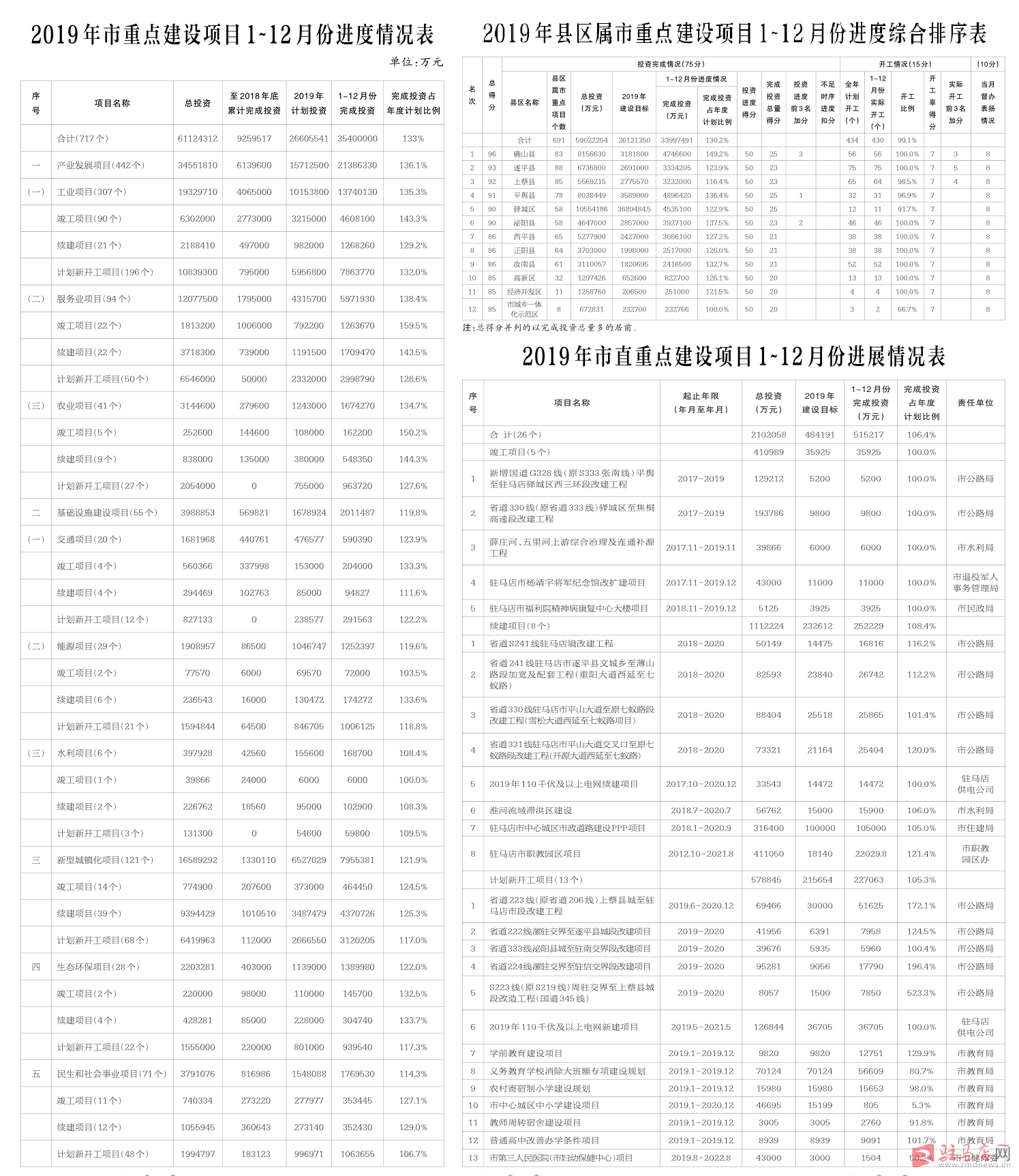 ——基础设施项目。55个基础设施项目1~12月份完成投资201亿元,占年度投资计划的119.8%。其中,20个交通项目累计完成投资59亿元,占年度投资计划的123.9%;29个能源项目累计完成投资125亿元,占年度投资计划的119.6%;6个水利项目累计完成投资16.9亿元,占年度投资计划的108%。