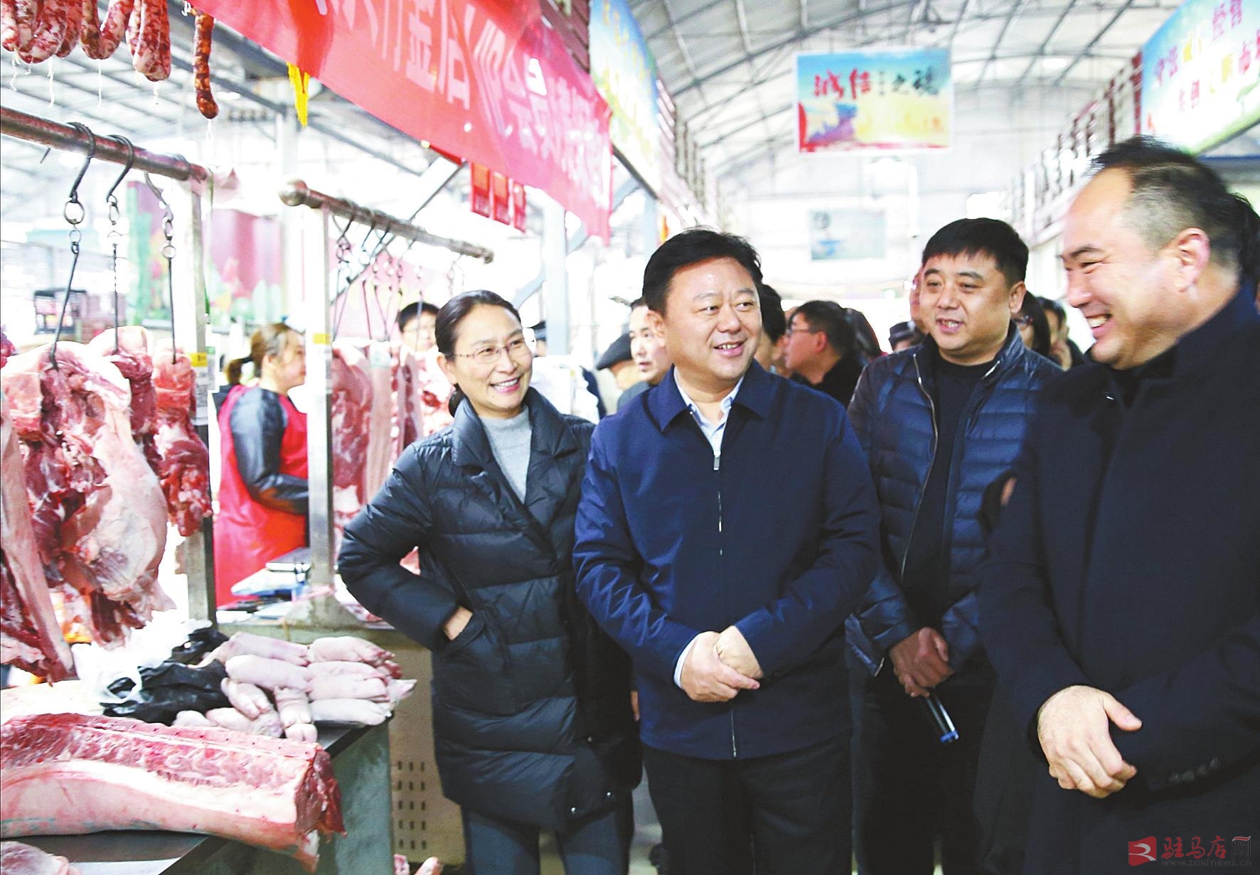 1月22日,市委书记陈星等领导到建业市场查看节前肉类蔬菜的供应情况。 记者弓华静摄