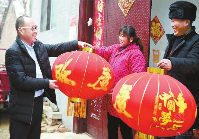 近日,新蔡县月亮湾街道办事处刘庄村第一书记为熊思中等贫困户送去春联、红灯笼等年货,祝福他们在新的一年里日子过得红红火火。