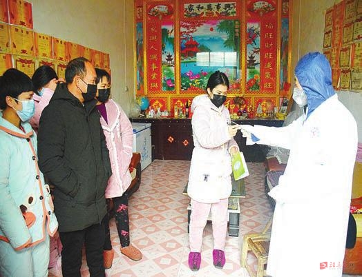 1月26日早晨,天空下起了雪,邱长兴骑着电动车来到了位于程庄的程某家,还没走到门口,这家人就把大门锁死,拒绝他进入。邱长兴就在门口站着等,一站就是两个小时,帽子、衣服落满了雪,程某被感动了,开了门,接受了例行消毒、量体温。这家人也向邱长兴说明了原因:邻居们异样的眼光让他们自尊心受到了伤害,也害怕自己真的出现体温不正常被隔离。邱长兴告知他积极配合例行消毒、量体温既是对自己的负责,也是对家人的负责。程某表示,以后会积极配合,主动量体温,自觉隔离。