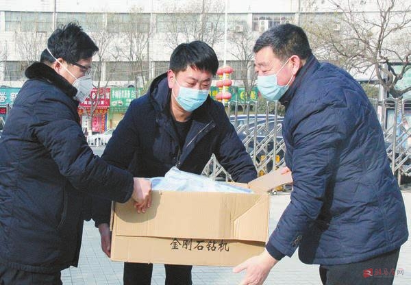 1月30日,浙江商贸城工具大观店店主胡笳来到驻马店日报报业集团,捐赠3000个口罩,让当前奋战在采编一线的新闻工作者感受到浓浓的爱心。见习记者 周迪 摄