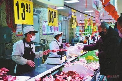 1月30日,市民在郑州市一家大型超市内采购猪肉。新华社记者 冯大鹏 摄