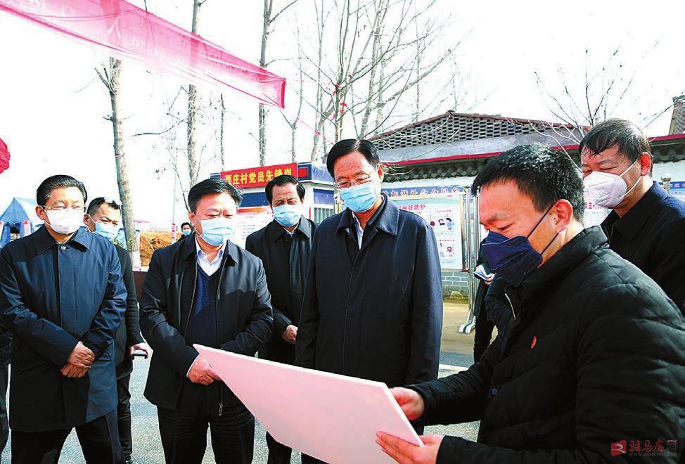 2月12日,上蔡县大路李乡负责人向前来督导疫情防控工作的省政协主席刘伟详细介绍大路李乡新冠肺炎疫情防控明白卡的内容。记者 弓华静 摄