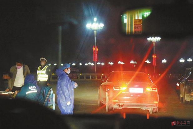 连日来,我市各部门联合在进入市区路口坚守值班。记者 张朝 摄