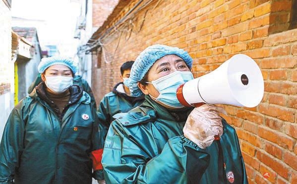 2月12日,正阳县真阳街道办事处黉学社区卡点对过往人员按照要求测量体温、消毒等,“红色代办员”帮助代办生活用品,消毒队员每天两遍对社区进行消杀,小喇叭疫情防控广播声传遍大街小巷。记者 杨军民 摄