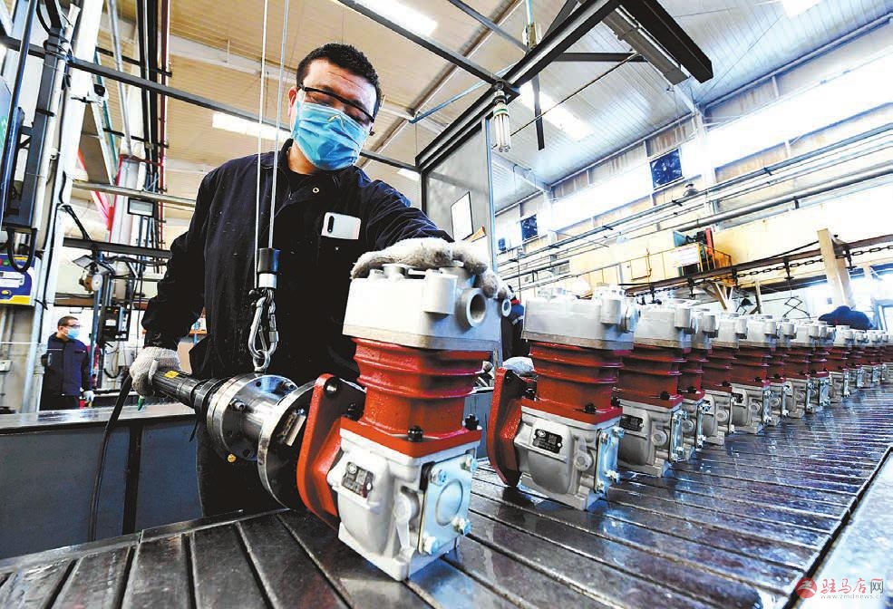 2月16日,工人在河北廊坊市安次区的瑞立美联制动技术(廊坊)有限公司组装车间内安装空压机齿轮。