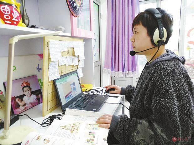 2月17日,北京中关村第三小学英语老师鲁凤玲在家中为学生录制“国家中小学网络云平台”教学内容,电脑附近贴满了用来提词的纸条。