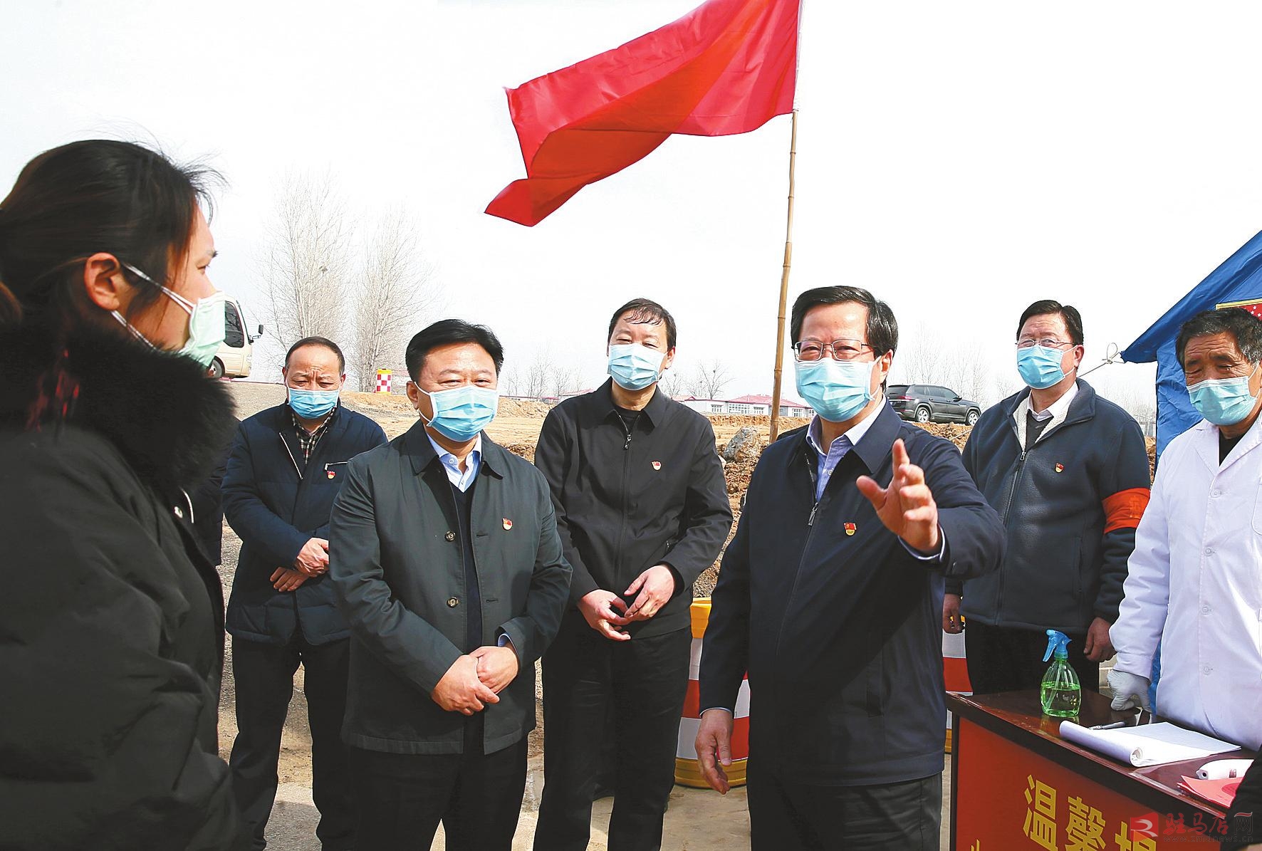 图为2月20日,省委常委、省纪委书记、省监委主任任正晓到驻马店市上蔡县大路李乡检查指导疫情防控监督等工作。市委书记陈星一起参加活动。 记者弓华静摄