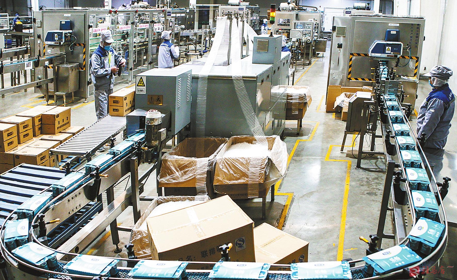2月21日,正阳君乐宝乳业有限公司车间内,机声隆隆,一片繁忙景象。该公司2月6日复工后,至目前上岗人员226人,半月内已生产各类奶制品1200多吨,疫情结束后,可实现月产9000吨。 记者杨军民通讯员高万宝摄影报道