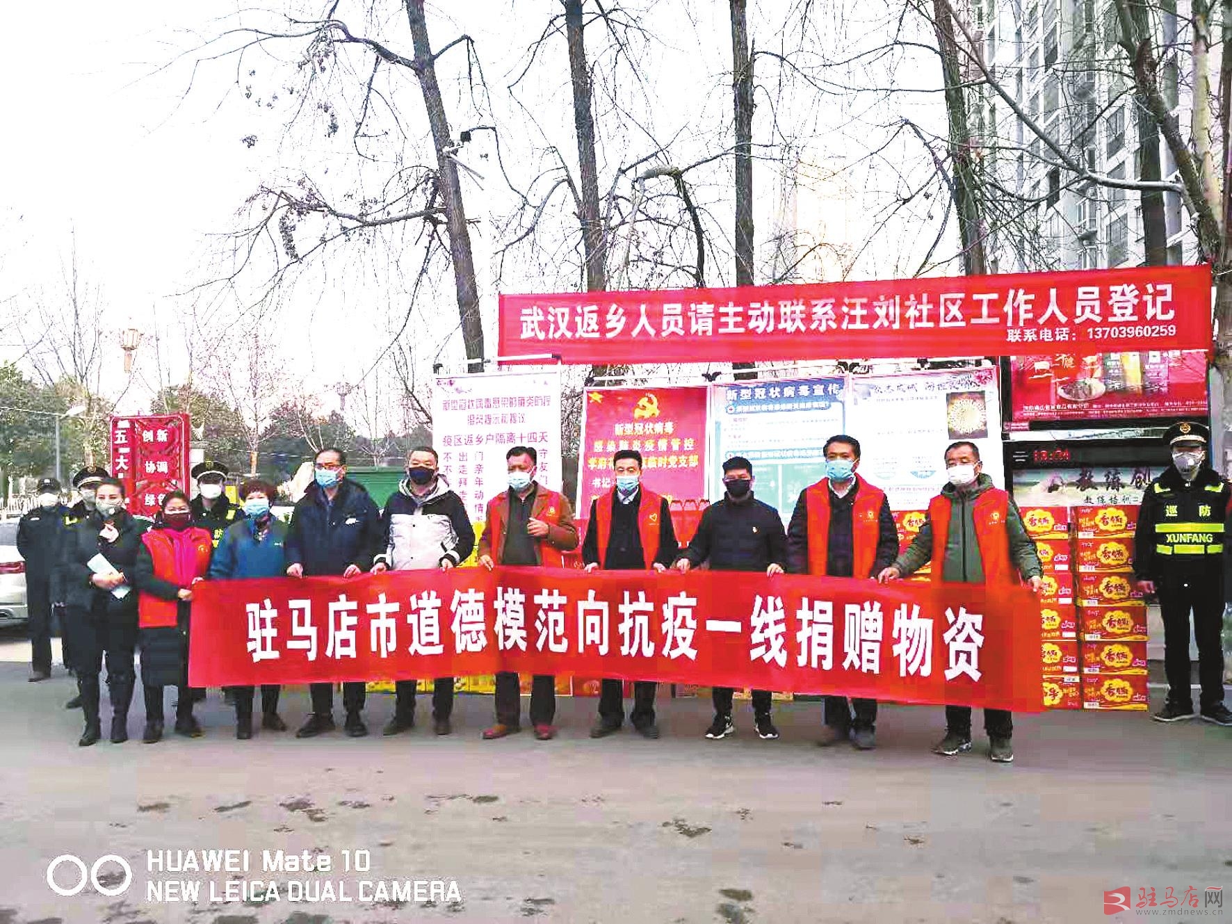 我市道德模范向开发区金河办事处汪刘庄社区捐赠抗疫物资。