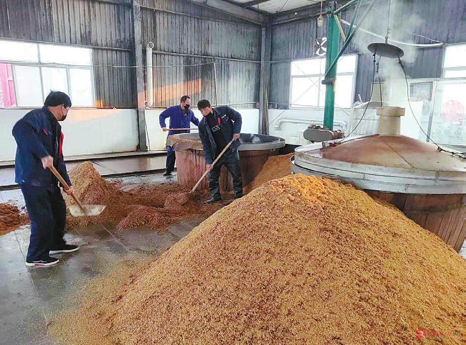 近日,五龙口酒业积极保供应、抓生产。该酒业酿酒用的水取自驿城区诸市镇地下天然淡水湖,富含锌、锶、偏硅酸等人体所需的微量元素。其整个固态酿酒过程经选料、粉碎、拌料、蒸煮、冷却、入窖、发酵等步骤,再历岁月沉淀,以低醉酒度、高舒适度被誉为“酒中上品”,形成了独特的驻酒酿造工艺。图为该酒业员工正在酿酒。