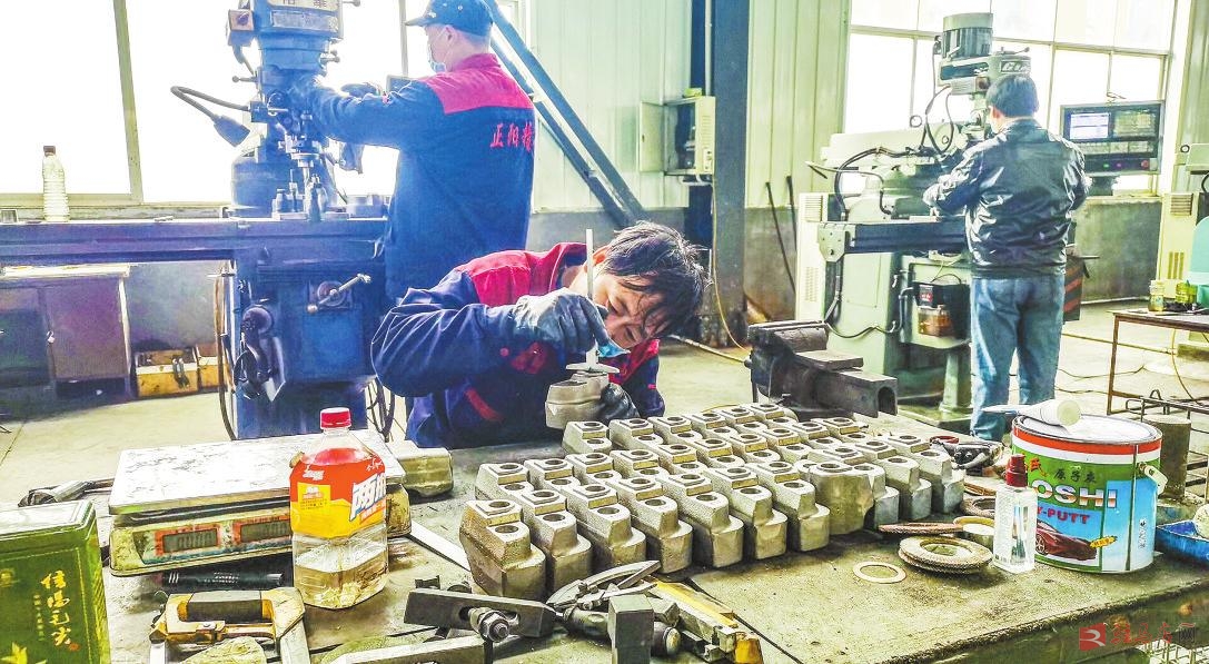 正阳县精工机械厂内的工人们正在加工汽车配件。