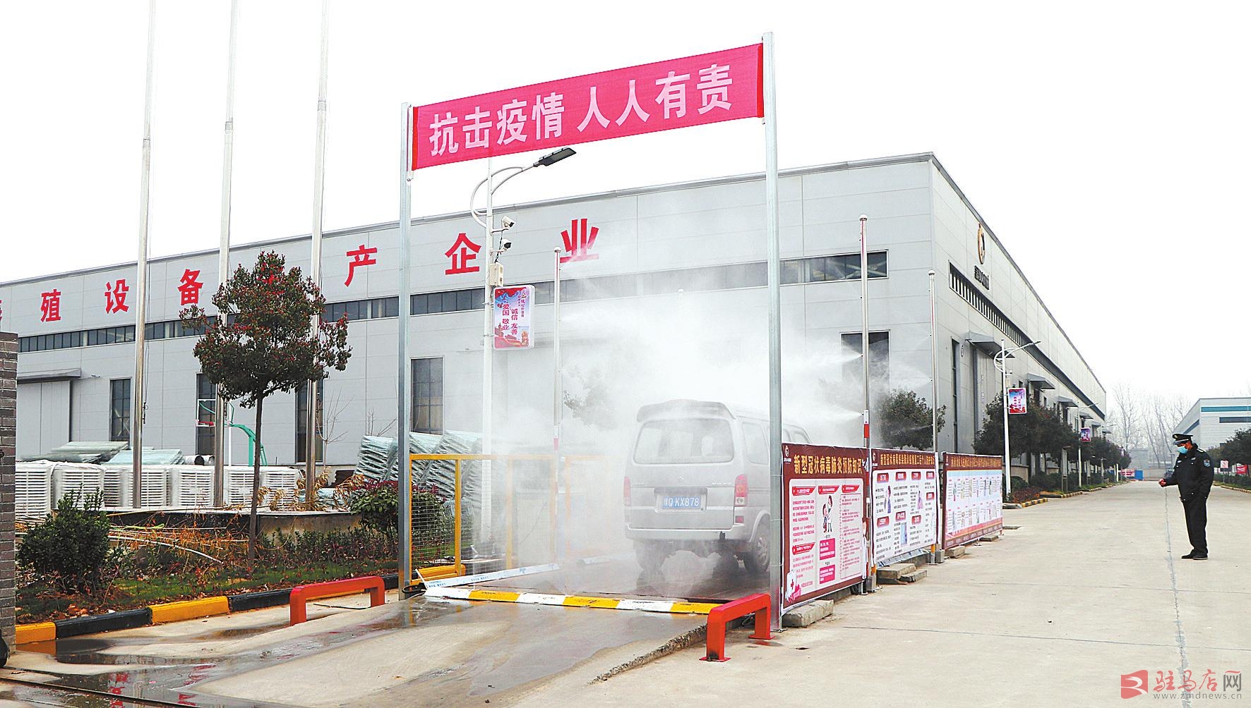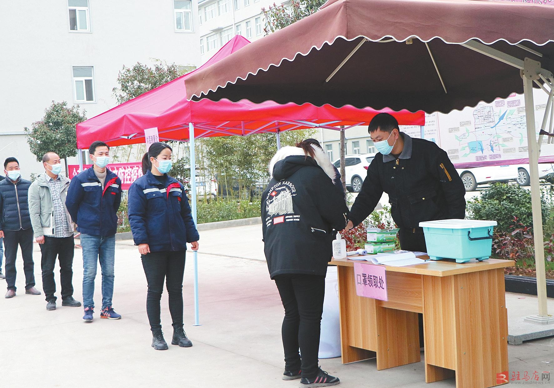 “请下车进行体温监测和消毒。”2月28日,在西平县阿尔本服饰有限公司的大门口,复工返岗的3名工人经过测温、消毒、登记等环节后,才能走进公司大院。