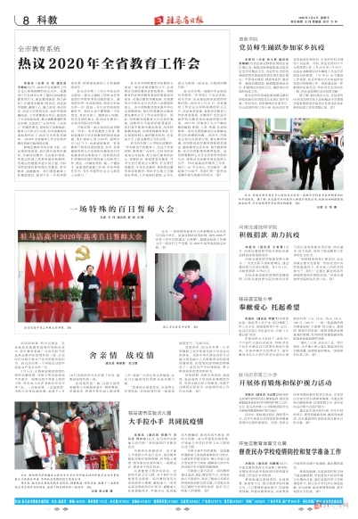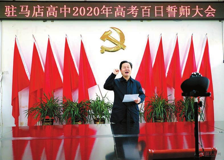 近日,一场特殊的高考百日冲刺誓师大会在驻马店高中举行。受新冠肺炎疫情影响,该校2000多名高三学生在家通过“云视频”,跟随该校高三年级主任一起进行庄严宣誓,向2020年高考发起最后冲刺。