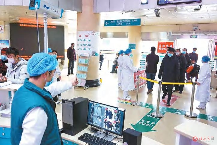 在医院门诊大厅正门和急诊科,均设置有全自动电子感应测温仪。为避免人员密集,办卡、交费、取药严格按要求站在一米线外,并遵守“一人一诊一室”,尽量减少陪护人员。