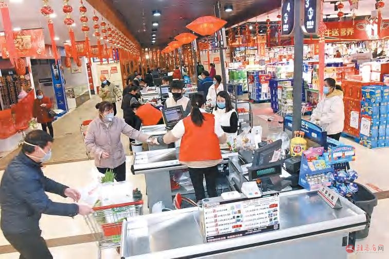 3月8日,在市区解放大道驻马店大润发超市,市民邢无靠买了一箱牛奶:“家里牛奶喝完了,其他东西都不缺,用完了再来买。”该超市工作人员介绍:“这段时间超市延时营业,每天上午8时30分开门,晚上7时关门,每天客流量正常,供应都能跟上,没有特别缺的商品。”