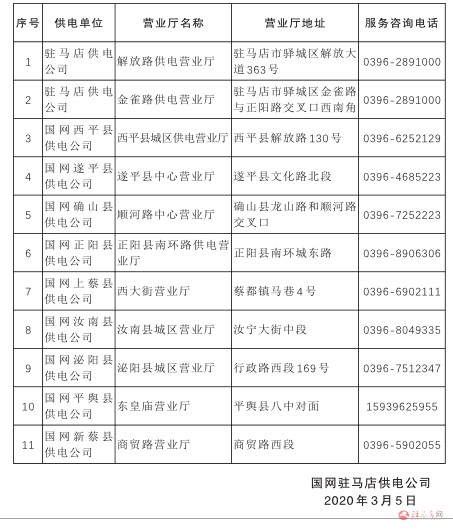 按照国家发展和改革委员会《关于阶段性降低企业用电成本支持企业复工复产的通知》(发改价格[2020]258号文件)要求,自2020年2月1日起至6月30日止,在国家电网计收直供范围内,除高耗能行业外,现执行一般工商业及其他电价、大工业电价的电力用户电费按应收电费的95%结算。按照国家发展改革委办公厅《关于明确阶段性降低用电成本政策落实相关事项的函》,高耗能行业指的是石油、煤炭及其他燃料加工业,化学原料和化学制品制造业,非金属矿物制品业,黑色金属冶炼和压延加工业,有色金属冶炼和压延加工业,电力、热力生产和供应业六大行业。国网驻马店供电公司辖区范围内的高耗能行业用户已在如下营业厅公示: