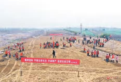 3月12日,在遂平县城南新区玉带河东段义务植树点,该县广大干部群众和志愿者一起参加植树活动,以实际行动为实施国土绿化提速行动、建设森林遂平再添新绿。记者 丁继坡 摄
