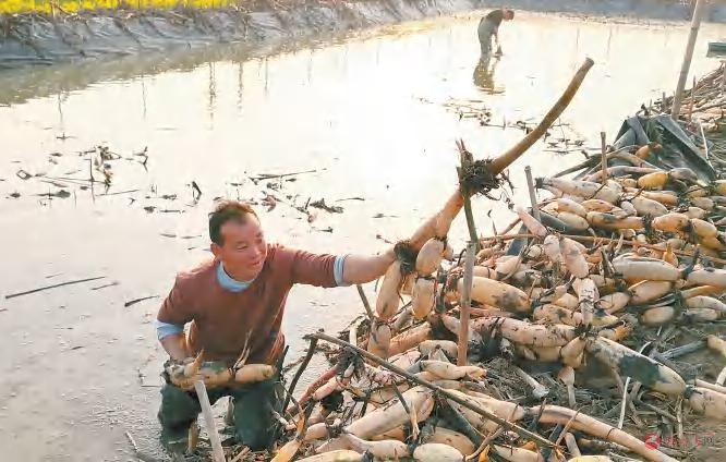 3月12日,正阳县皮店乡夏寨村村民夏新志正在自己的藕塘里种植莲藕。去年,他种植了4亩多莲藕,年收入达2万元。记者 杨军民 摄
