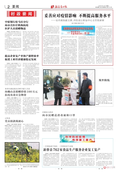 中原银行驻马店分行向市直医疗机构抗疫医护人员捐赠物品
